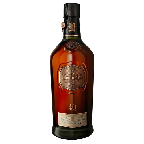 Glenfiddich 40 Year Old is a testament to the mastery of time. This peerless single malt is created by marrying exquisite 40-year-old vattings to achieve a whisky of infinite depth. As a pioneering force in the industry, Glenfiddich continues to define excellence, offering a sensory journey through layer upon layer of rich aroma and sophisticated flavor that remains unrivalled among rare whiskies of this venerable age.